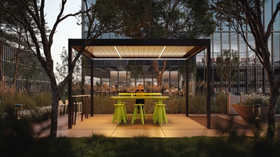 Offered in partnership with Renson, a global leader in natural ventilation, outdoor sun protection systems and outdoor furnishings, Cove is designed to make high-quality outdoor structure available to a wide range of recreation, educational campus and corporate campus projects, while simplifying the experience with a selection of standard sizes and thoughtfully curated standard accessory options. It is also well-suited for more intimate environments like poolside retreats, cabanas, high-end patios, multifamily residential amenity spaces and hospitality settings where a lighter footprint and shorter lead time may be key to project success.